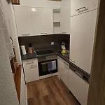 Cozinha equipada do Marco Apartment - Aare Jungfrau Ag inclui refrigerador e forno. A estação de comboios Glacier está a cerca de 5 minutos de distância a pé.
